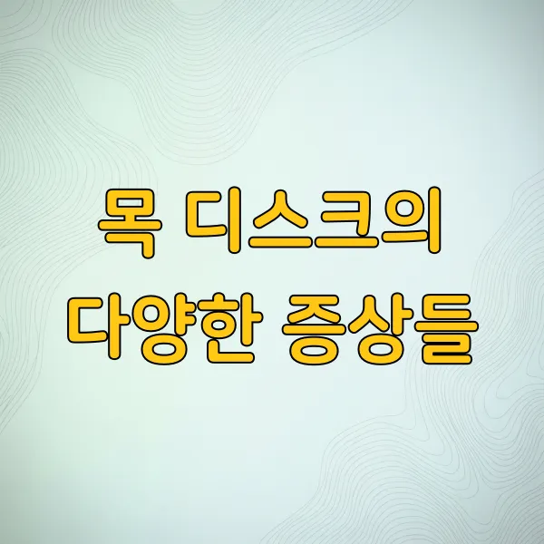 목 디스크 증상은 통증의 위치와 양상이 다양하게 나타나요. 단순히 목 뒤쪽이 뻐근하거나 뻣뻣한 느낌에서 시작될 수 있답니다.